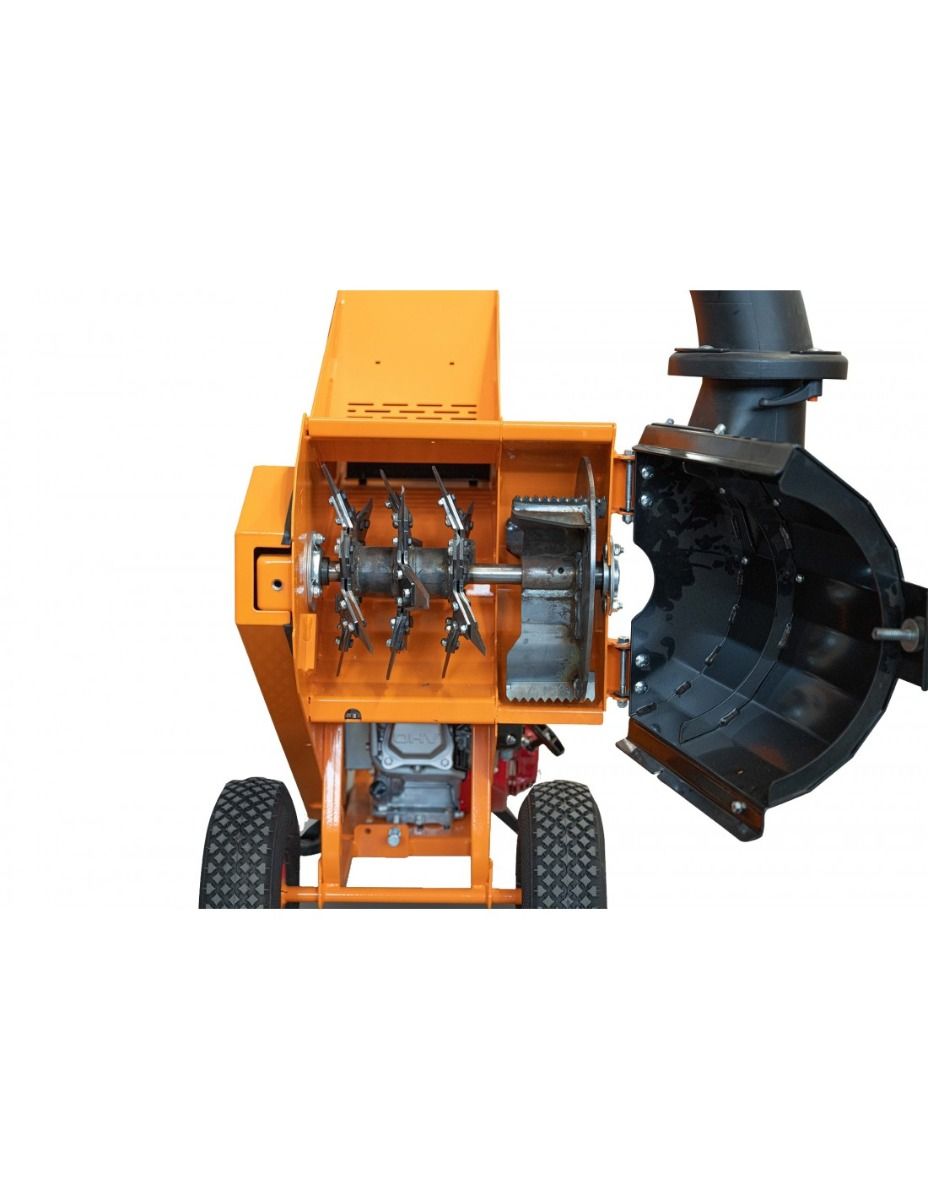 Monta un motore HONDA GP200 da 6 Hp a 4 tempi, molto affidabile e potente, riesce a macinare rami fino a un diametro massimo di 45 mm. ed effettua 30.000 tagli al minuto.